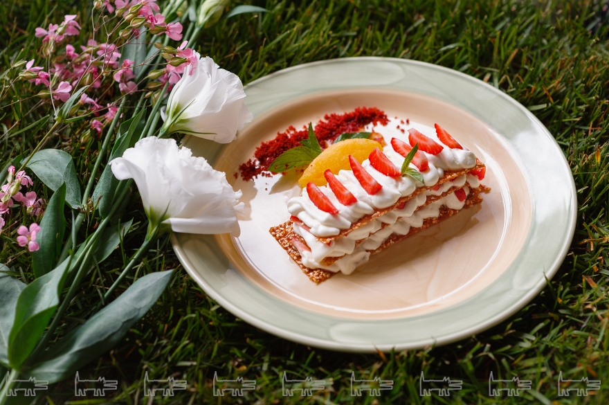 Котлетки из трески готовятся по секретному рецепту шеф-повара и подаются со сливочным крем-пюре. Паста фарфалле с лососем, обжаренным в сливочном соусе, прекрасна в сочетании со свежей брокколи. К салату с тунцом прожарки medium rare и соусом тар-тар приносят микс салатных листьев с маринованным перцем, помидором черри и яйцом пашот. Теплый салат с семгой, заправленный французским соусом и сухариками, – это идеальное сочетание сочного филе семги с листьями салата, редисом, свежим огурцом и помидорами черри. Десерт мильфей готовят из хрустящей карамели и кунжута с прослойкой из клубники и сливочного крема на основе сыра маскарпоне и подают с апельсиновым сорбетом. Ассорти сливочных десертов: в дополнение на выбор клубника, ягоды сезонные, абрикос.