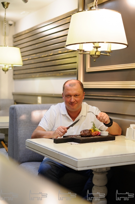 «Я считаю, что выбор настоящего мужчины – это мясо! Я люблю его во всех проявлениях: от шашлыка из баранины до медальонов из говядины. Здесь всегда заказываю стейк ‘‘Миньон’’ и все официанты уже знают о моем пристрастии. Гарнир выбираю по настроению и по погоде: жареную картошку, например, летом совсем не хочется. Но в любом случае, все, что здесь готовят,– всегда по–домашнему и очень вкусно. Поэтому сюда хочется как можно чаще приходить с друзьями».