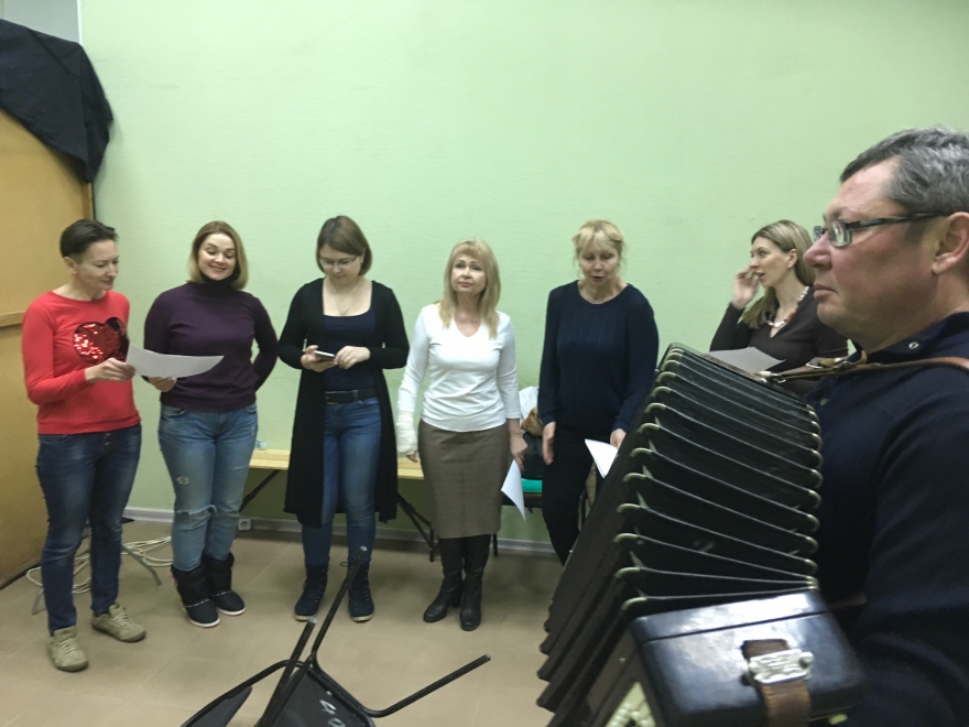 Изначально мы не очень понимали, как будет выглядеть музыкальное сопровождение. Но мне очень хотелось, чтобы прозвучали песни, которые были очень популярны в нашей стране, в Сталинграде, а потом почему-то оказались забытыми. В поисках нот к словам этих композиций я обратилась к музыканту и педагогу Дмитрию Арутюнову, который сказал, что все без проблем можно подобрать, приводи свой хор. Я еще пригласила нашего баяниста, который работает мастером водоканала. И как-то буквально за час все это сложилось в такую чудесную спевку, что мы решили: никаких фонограмм писать не будем. Так что все песни исполняются вживую, и я очень рассчитываю, что зрители, которые придут на спектакль, будут нам подпевать - слова мы напечатали на обороте программок, которые раздадут волонтеры при входе.