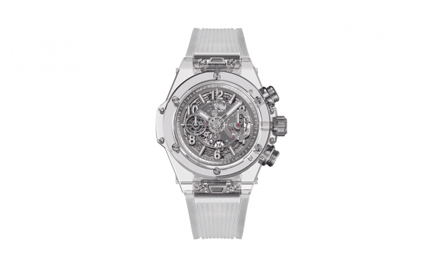 Пять лет назад Hublot покорилось и Magic Gold, единственное устойчивое к царапинам золото. Абсолютно прозрачные корпусы и безели пятисот новых часов вырезаны из этого прочного (девять по шкале Мооса против алмазных десяти!) и неподдающегося материала. До сих пор в часовой и хай-тек-промышленности его умели лишь слегка загибать, изготавливая экраны смартфонов, стекла циферблатов и задних крышек. Мастера Hublot к компромиссам не склонны. Поэтому из полированного сапфирового стекла они сделали все детали 45-миллиметрового корпуса, кроме шести титановых винтов, заводной головки и кнопок хронографа.