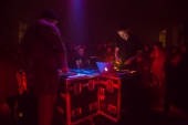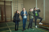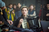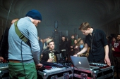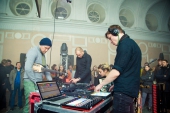 Коллектив «Тундра», участники которого известны своими творческими работами со светом, звуком и видеоинсталляциями, лишь на одну ночь устроил завораживающее аудиовизуальное шоу «Гиперпрыжок». Перформанс вдохновлен пространством спортзала, который расположен в парадных интерьерах Манежа Первого Кадетского корпуса — задачей «Гиперпрыжка» был скачок сквозь время и эпохи. В кульминации вечера прозвучало живое импровизационное выступление трех петербургских музыкантов 21 Outside, Prisheletz и Re’sequence, впервые собравшихся вместе, чтобы исполнить монументальную соматик-джаз симфонию.