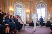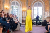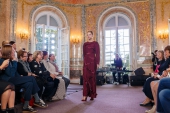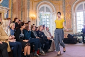 В Большом зале Китайского Дворца в Ораниенбауме Екатерина II принимала иностранных послов и наиболее приближенных лиц. А сегодня дизайнер Татьяна Парфенова встречала друзей здесь же, во впервые открытом для публики после реконструкции дворце, близких друзей Модного Дома. На фоне мраморных пилястр, колонн с коринфскими капителями и надкаминных панно Стефано Торелли прошел показ новой коллекции «Любовь к апельсинам»: двадцать шелковых платьев и костюмов первой линии в цветах бархатного сезона — от винного до асфальтово-серого, – и с фирменными швами наружу, придуманными Татьяной Валентиновной в год основания Модного Дома.