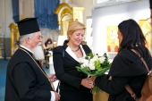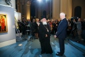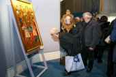 На открытие экспозиции работ, собранных по всем церквям и храмам Крита, приехали жена Манолиса Елена, мэр города Сития Теодорос Патеракис, священнослужители Критской Православной Церкви и паломники из Греции, а сам мастер зачитал приветственное слово по Skype.