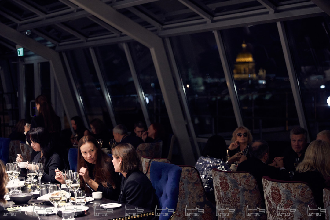 Панорамой Петербурга под аккомпанемент Kito Jempere любовались глава компании Biocad Дмитрий Морозов, дизайнер Татьяна Котегова, бизнесмен Михаил Баженов и другие.